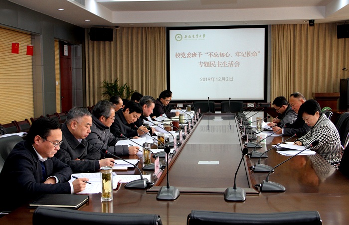 本网讯 根据主题教育工作安排,12月2日下午,校领导班子“不忘初心、牢记使命”专题民主生活会在校第三会议室召开。省委第十一巡回指导组组长刘飞跃及指导组成员到会指导。校领导江春、裴树东、蒋家平、韩军、陈文兵、朱立军、操海群参加会议,校领导夏涛、马传喜,校办主任刘凯列席会议。