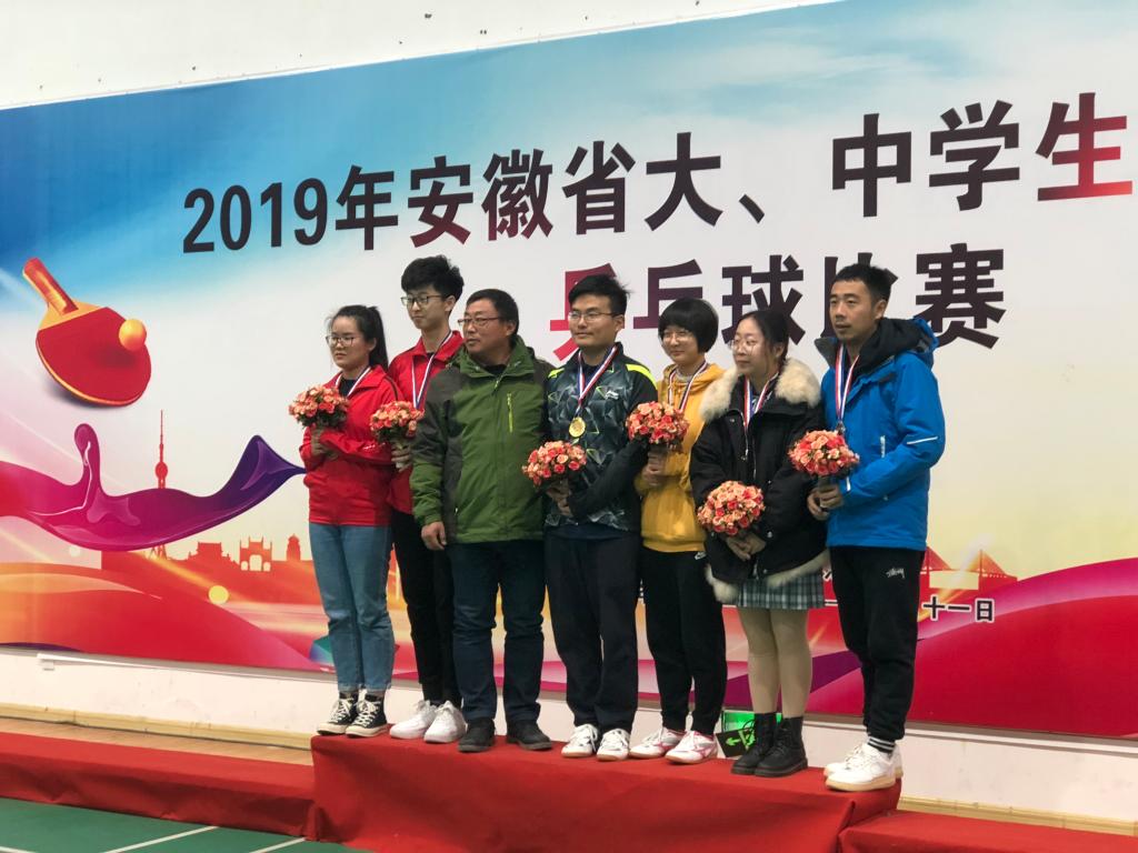 本网讯 11月29号到12月3号,2019年安徽省大、中学生体育联赛乒乓球比赛在淮南师范学院举行,我校取得了女子甲组团体第一名、甲组混合双打第一名等多项好成绩,并获得“体育道德风尚奖”。