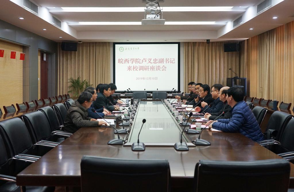 本网讯12月10日,皖西学院党委副书记卢义忠一行7人来校调研考察。校党委副书记裴树东主持调研座谈会,并陪同考察了生物技术中心和图书馆。