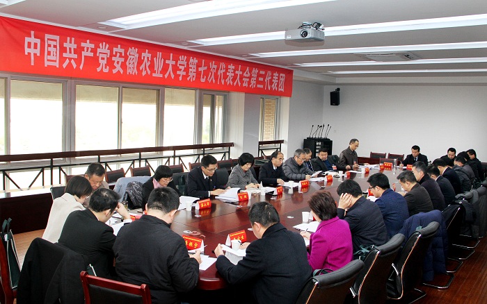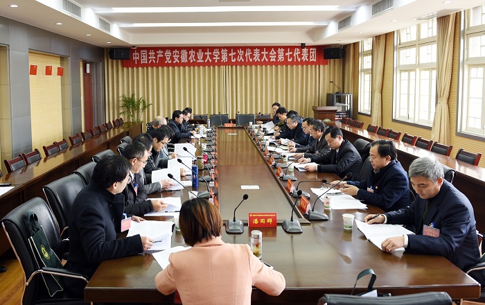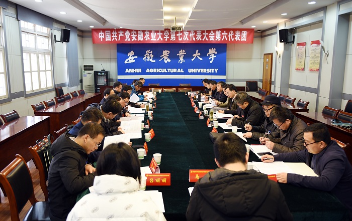 本网讯12月19日下午,中共安徽农业大学第七次代表大会代表们分成7个代表团,召开分团会议,对党委工作报告、纪委工作报告进行审议。20日上午,代表们继续审议报告,同时还对“两委”工作报告决议(草案)、大会选举办法(草案)进行了讨论,对“两委”委员候选人,选举工作总监票人、监票人,总计票人、计票人建议名单等进行了酝酿。校领导江春、裴树东、蒋家平、韩军、陈文兵、朱立军、操海群,原校党委书记赵良庆,原校党委副书记、校长程备久分别参加了讨论。