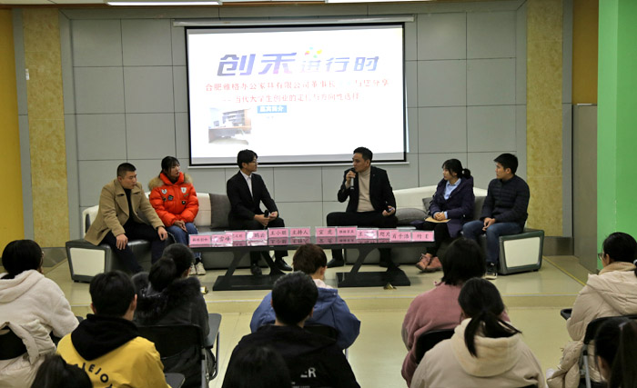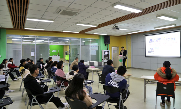 本网讯 12月22日晚,我校校友、合肥雅格办公家具总经理宣虎做客我校“创禾进行时”,在大学生创客空间A区路演大厅为创客带来了一场主题为“当代大学生创业的定位与方向性选择”的创业沙龙活动。我校创客空间相关团队以及对创新创业感兴趣的同学参加了活动。