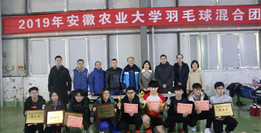 本网讯 2019年我校羽毛球混合团体赛于12月29日在我校第三运动场羽毛球馆落下帷幕。本次比赛共有13个学院报名参赛,经过激烈角逐,轻纺艺术学院、经济管理学院、林学与园林学院获得前三名,茶与食品科技学院、资源与环境科学学院、工学院、园艺学院、植物保护学院分获四至八名,相关学院负责人出席闭幕式并为获奖代表队颁奖。