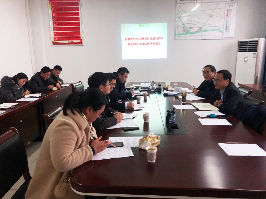 本网讯 12月30日,校党委常委、副校长操海群到学校皖北综合试验站调研指导工作,并召开皖北综合试验站校区座谈会,学校新农村发展研究院执行副院长张承祥、埇桥区副区长魏启宏、埇桥区国家现代农业示范区管委会和皖北综合试验站等单位有关负责人陪同和参会。