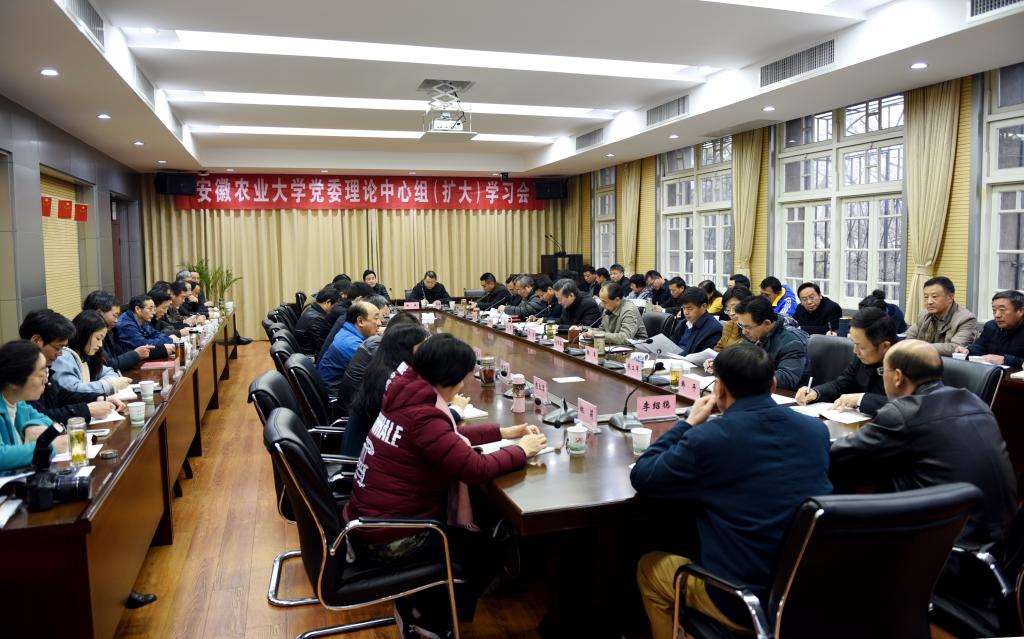 本网讯1月3日上午,学校在第三会议室召开党委中心组(扩大)学习会,围绕中央及省委近期一系列重要会议的主要精神,以及国家近期关于新农科建设的重要战略部署等开展学习和交流研讨。校领导江春、夏涛、裴树东、马传喜、蒋家平、韩军、朱立军、操海群参加会议。校党委书记江春主持会议。