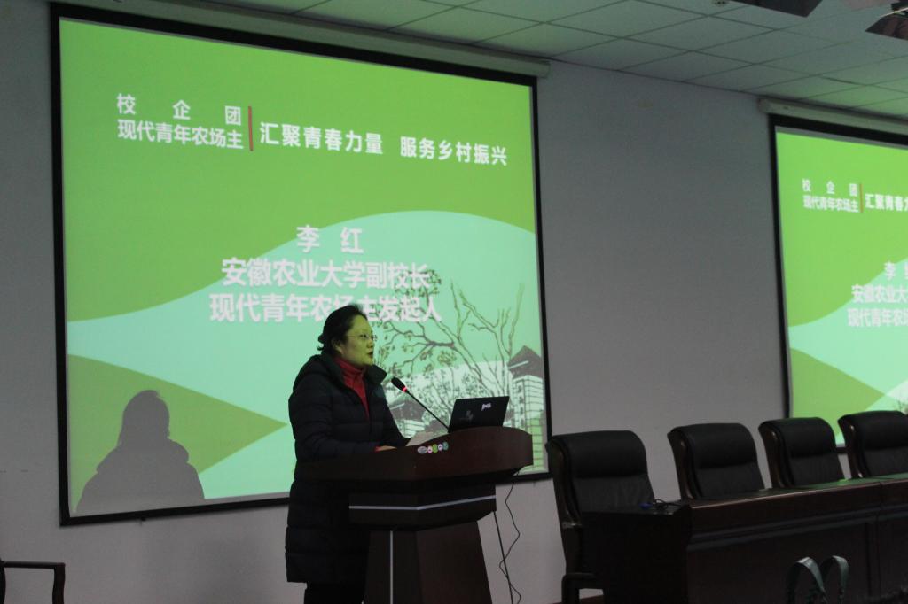 本网讯1月7日下午,农学院现代青年农场主班在我校科技楼441会议室举行“汇聚青春力量,服务乡村振兴”主题汇报会。副校长李红、荃银高科副董事长、总经理张琴、农学院院长李金才、农学院党委副书记、副院长鄢高翔、部分任课老师、现代青年农场主部分历届试验班学生和在校生参加交流汇报会。