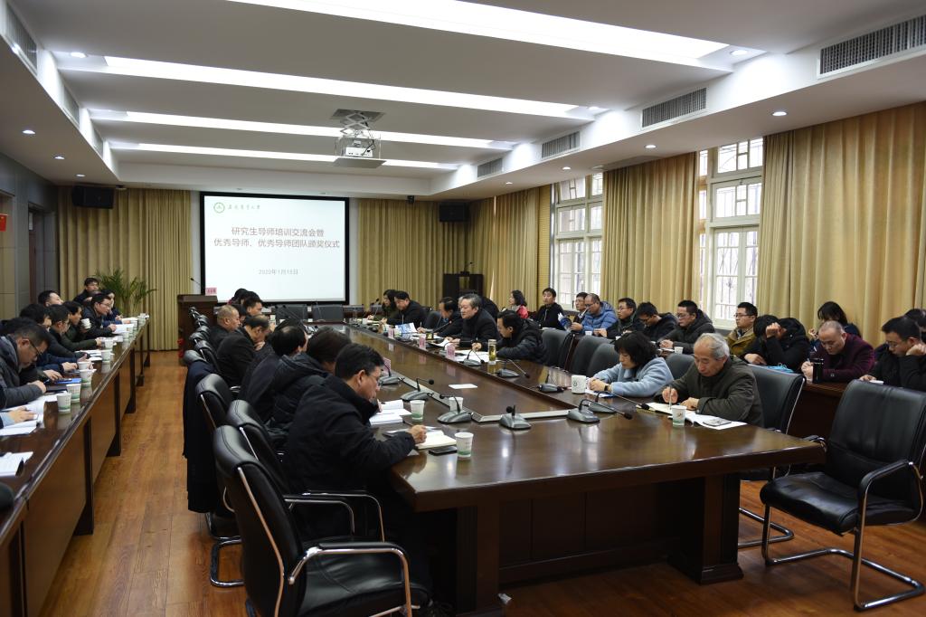 江春代表学校对研究生优秀导师团队和研究生优秀导师表示祝贺。他指出,新时代新形势对研究生教育和导师队伍水平提出了新的更高要求,要充分认识开展导师培训交流的重要意义,牢记导师是研究生培养的第一责任人,肩负着培养高层次人才的使命与重任;要深刻把握研究生导师立德树人的首要职责,做到政治素质过硬、师德师风高尚、业务素质精湛,培养德才兼备、全面发展的高层次专门人才;要全面提升研究生导师的教育指导水平,把规范研究生学术道德、提高研究生培养质量、培养研究生创新创业能力、加强对研究生的人文关怀摆在重要位置,做好研究生培养各项工作;要不断建立健全“三项机制”,久久为功抓实导师队伍建设。各培养主体要通力合作,通过规范遴选和评价机制,完善培训和交流机制,强化激励和保障机制,积极构建多方协同配合的导师队伍建设机制。