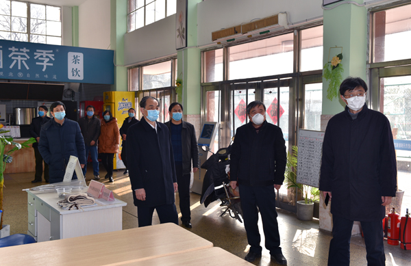 本网讯2月4日下午,校长夏涛,党委副书记裴树东,党委常委、副校长韩军,在办公室、研究生处、学生处、保卫处、总务处、国际教育学院、后勤集团、学生公寓小区管理中心等部门负责同志陪同下,实地检查我校疫情防控工作。
