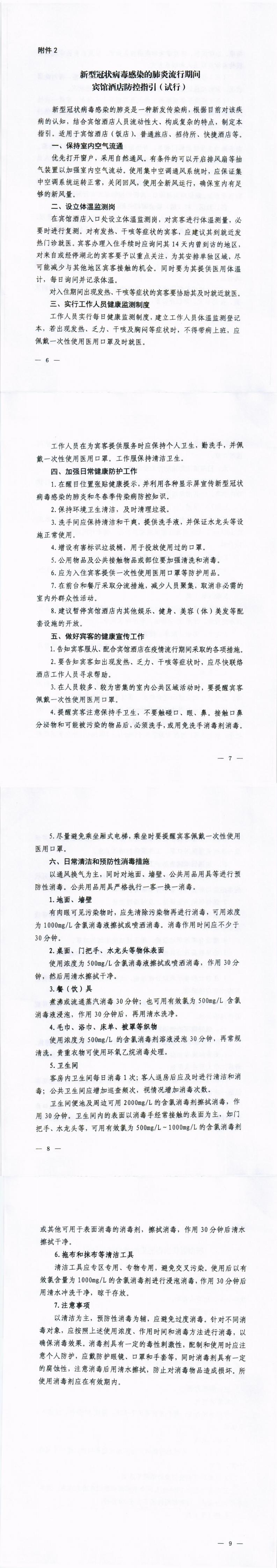 《新型冠状病毒感染的肺炎流行期间宾馆酒店防控指引(试行)》