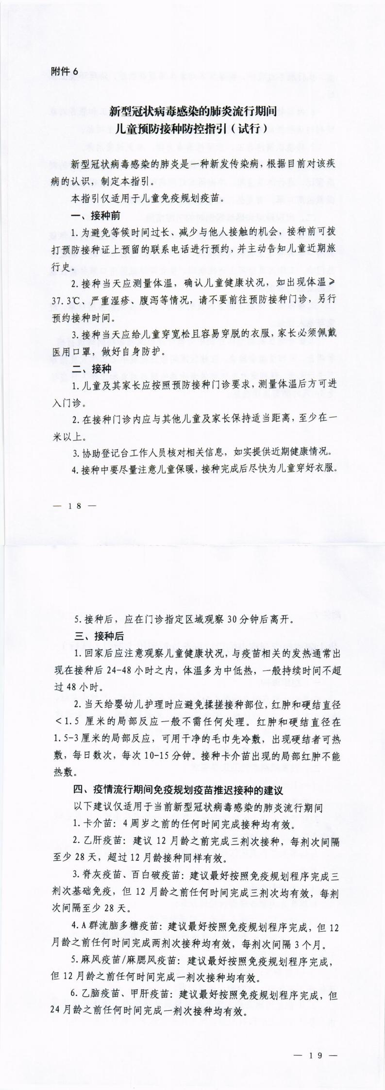 《新型冠状病毒感染的肺炎流行期间儿童预防接种防控指引(试行)》