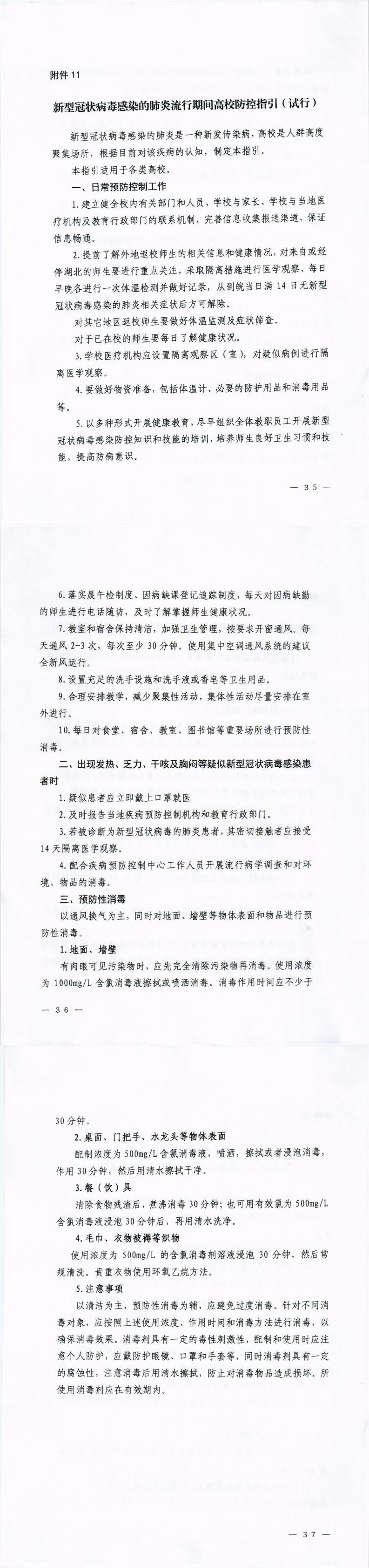 《新型冠状病毒感染的肺炎流行期间高校防控指引(试 行)》
