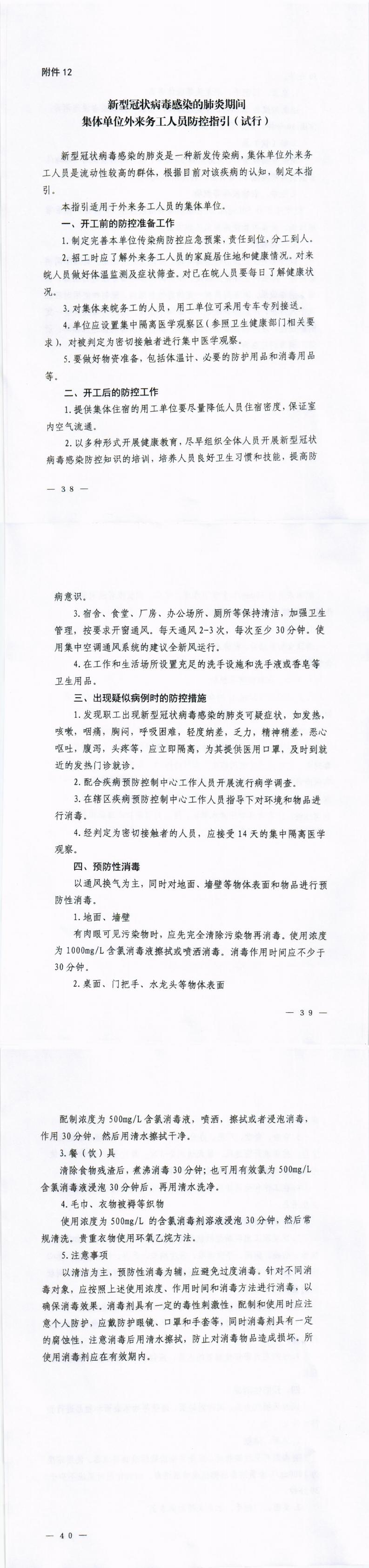 《新型冠状病毒感染的肺炎流行期间集体单位外来务工人员防控指引(试行)》