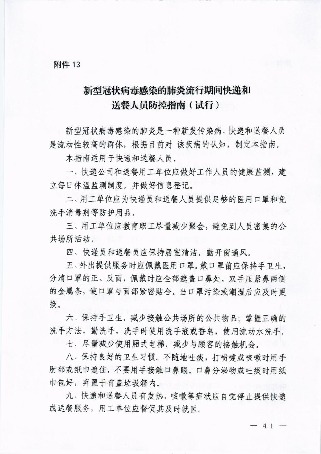《新型冠状病毒感染的肺炎流行期间快递和送餐人员防控指南(试行)》