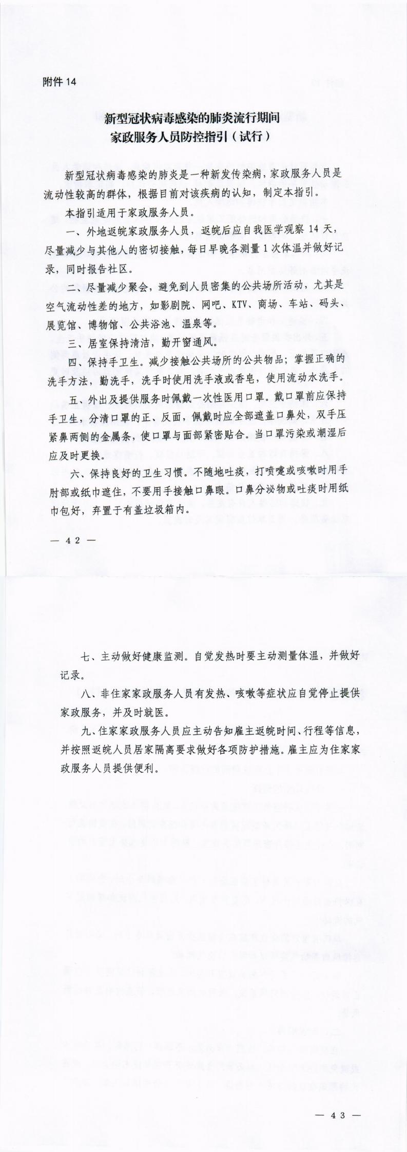 《新型冠状病毒感染的肺炎流行期间家政服务人员防控指引(试行)》