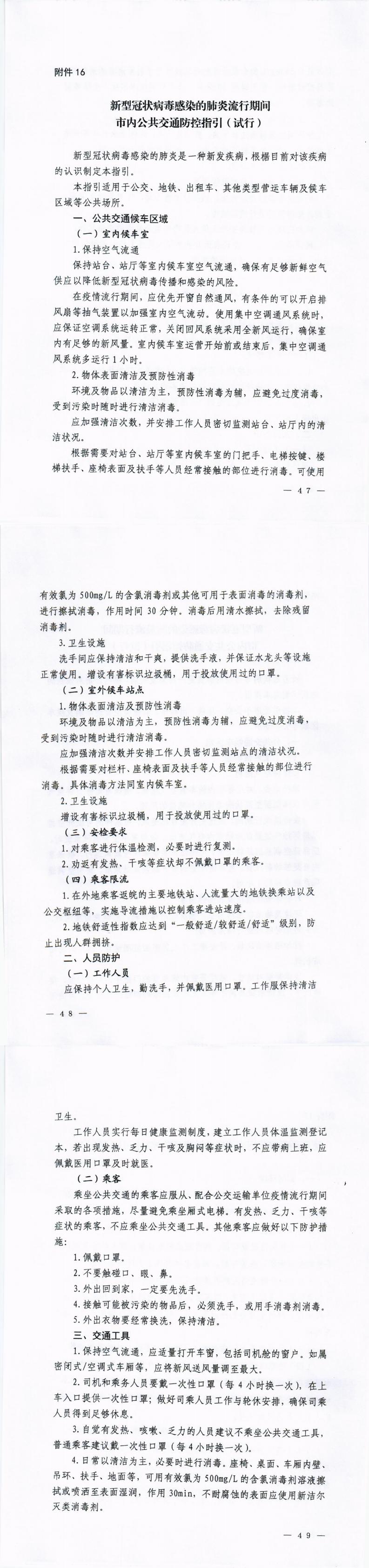 《新型冠状病毒感染的肺炎流行期间市内公共交通防控指引(试行)》