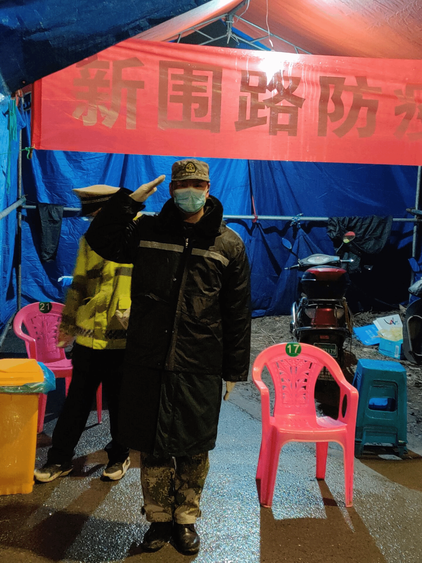 蒋军是我校工学院2019级农业机械化及其自动化学生,作为参军退伍返校的一员,他把“责任”二字时刻扛在肩上。他的家乡浙江省是确诊人数第三多的省份,他所在的村庄也实行了封闭化管理,高速公路和重要通道都设立了防疫检查站。从2月3日开始,蒋军就在浙江绍兴的新围路口“防线”当期了防疫检查员。在工作中,蒋军觉得,尽管疫情限制了人们的外出,道路上的车辆变少了,但人们的生活秩序并没有被打乱,在每天的值班中,他都可以看到某个时间点上班族去上班,送菜车开始送菜,物资车也从有序经过。值班中,蒋军还遇到了给他们送水果的热心市民,让他感受到了身边的温暖。他坚信,疫情一定会被早日打败。