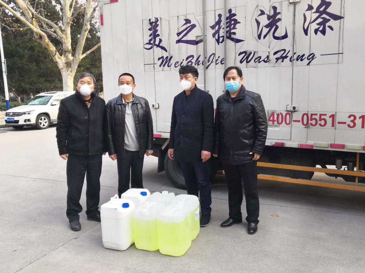 合肥市美之捷洗涤有限公司向学校捐赠消毒液和75%医用酒精