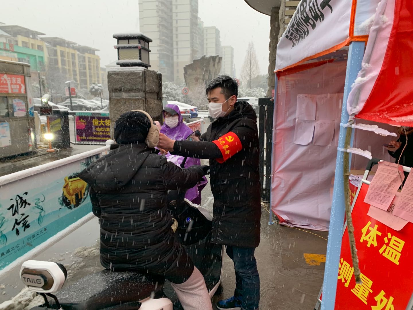 “您好,请您配合我们的检查,先量个体温……”在安徽省六安市裕安区独山镇怀华寺村的关键路口,工学院18级机械设计制造及其自动化团支书胡安泰同学戴着口罩,穿着志愿者红马甲,为来往的村民量体温。自疫情防控狙击战打响以来,园艺学院、理学院、经济管理学院、植物保护学院、资源与环境学院、动物科技学院、农学院数百名青年学子主动请缨,积极报名担任疫情防控志愿者。他们分别参与到家乡疫情政策解读、宣传科学、巡逻防控、消毒清洁、登记检查等工作中,成为这场战“疫”中不可或缺的一分子,用实际行动践行雷锋精神,充分展现了新时代团员青年的使命与担当。
