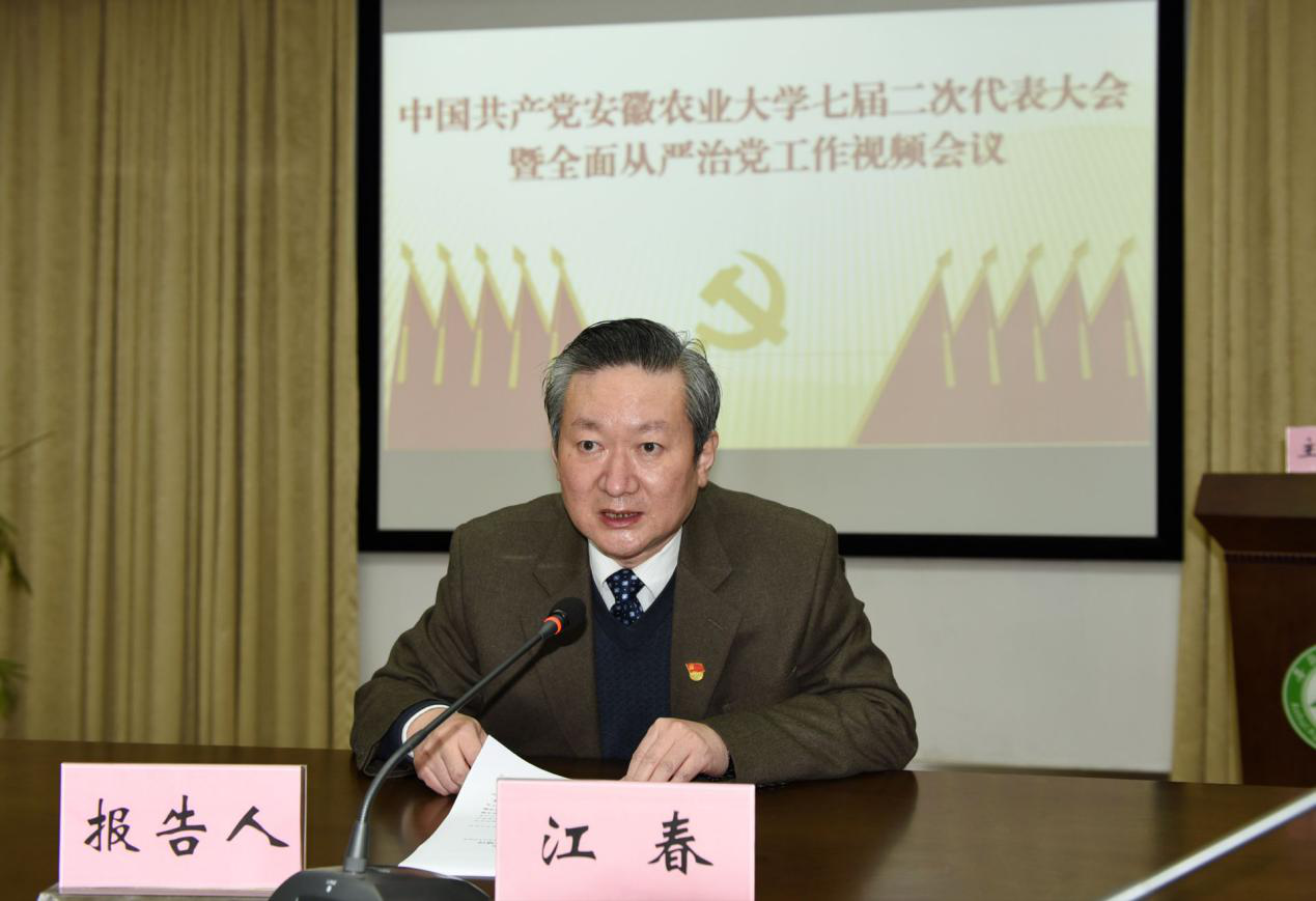 校党委书记江春代表中共安徽农业大学第七届委员会向大会作了题为《凝心聚力狠抓落实加快推进特色高水平大学建设》的工作报告。