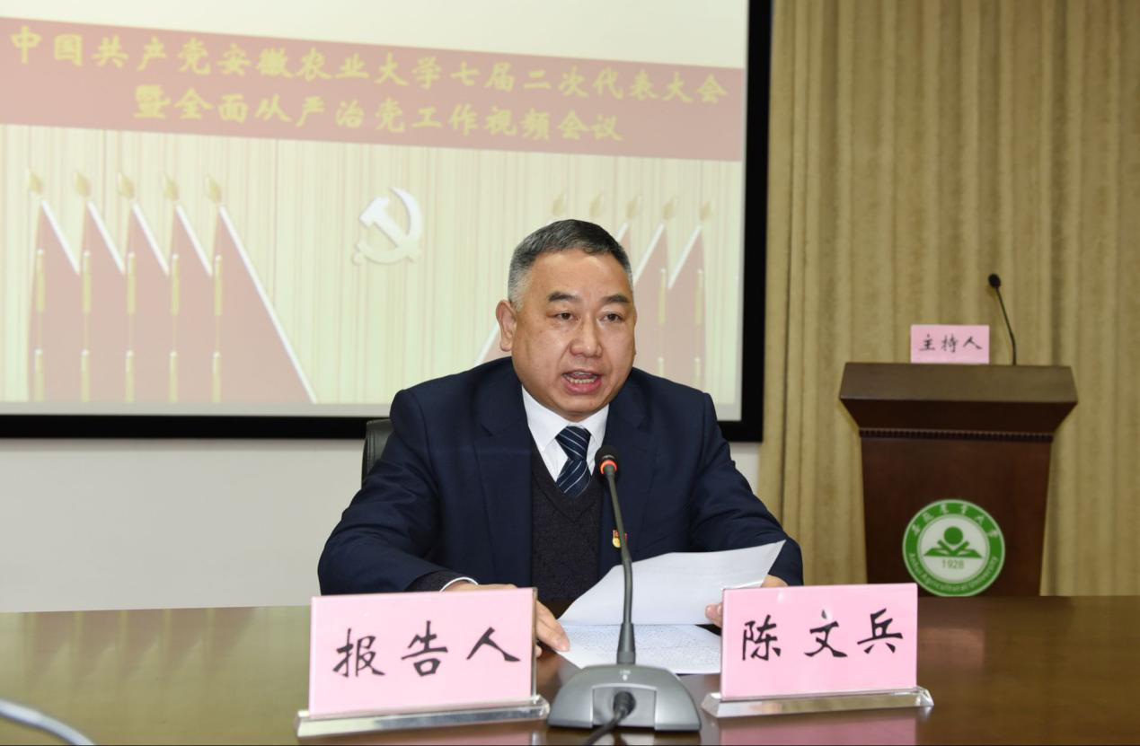 校党委常委、纪委书记陈文兵代表中共安徽农业大学纪律检查委员会向大会作题为《牢记使命担当忠诚履职尽责从严从实推动学校纪检工作高质量发展》的工作报告。