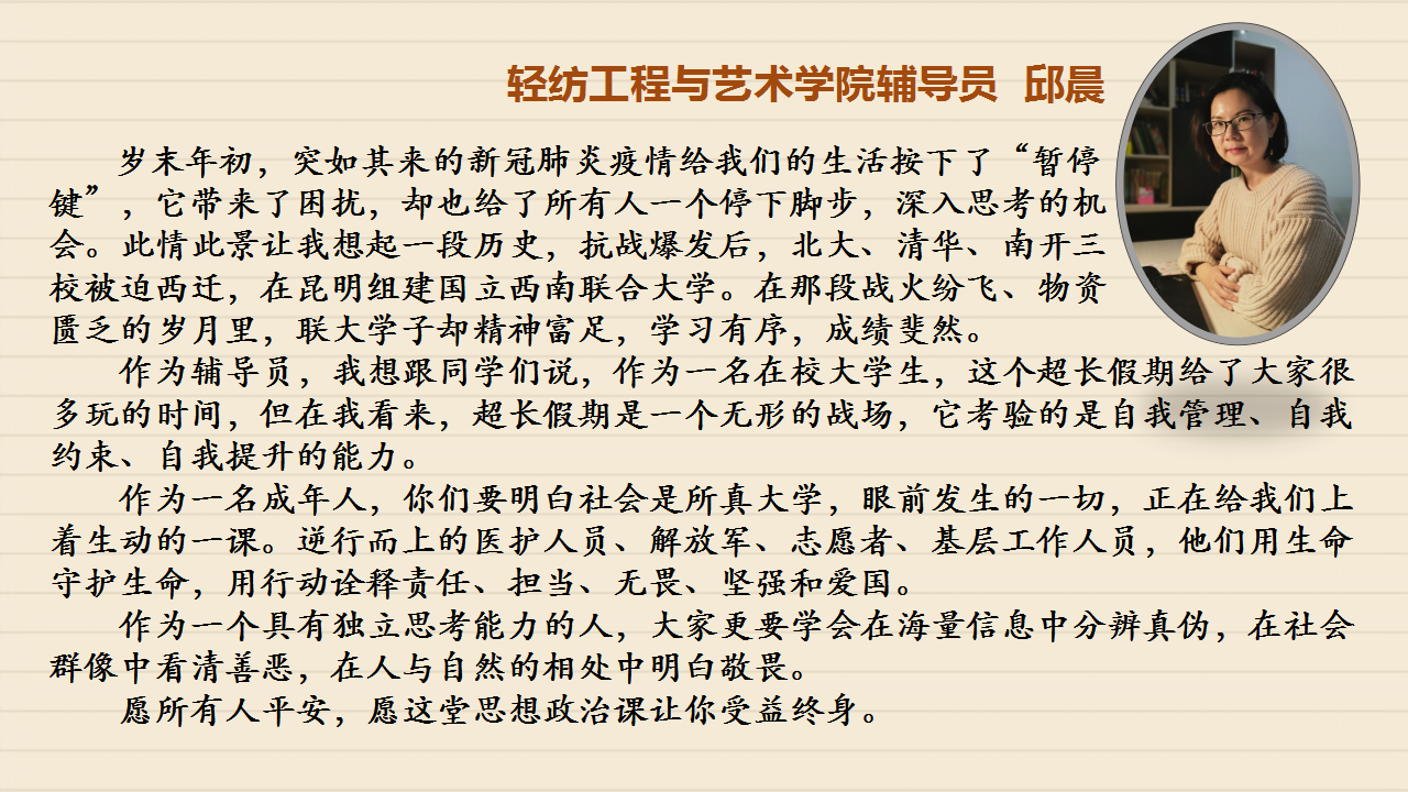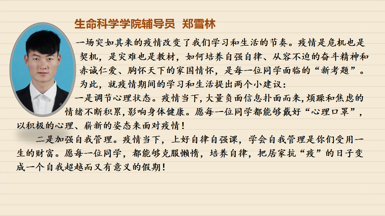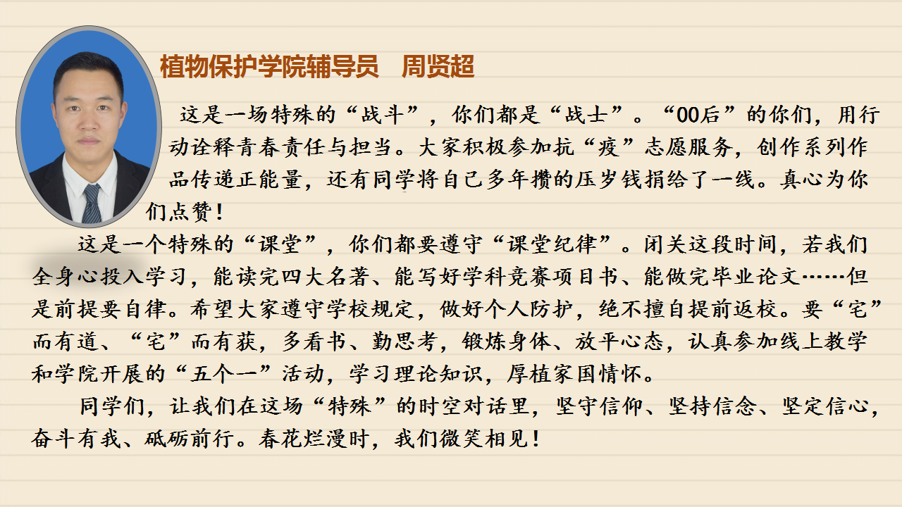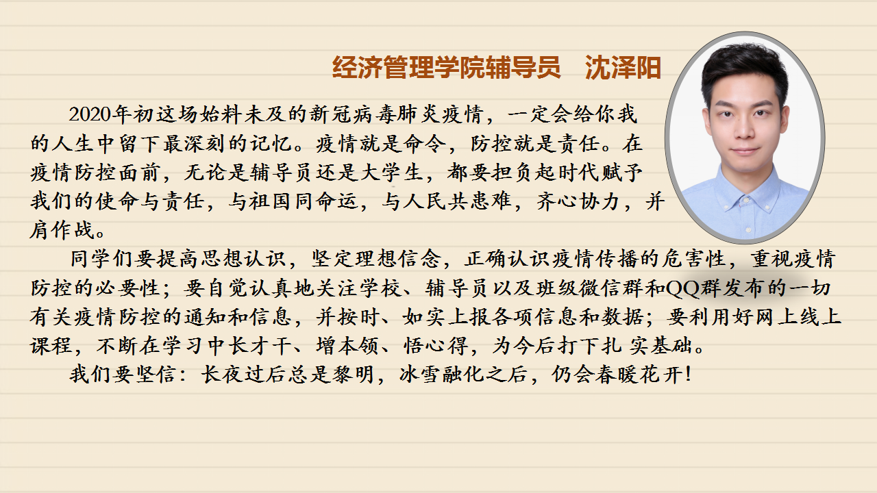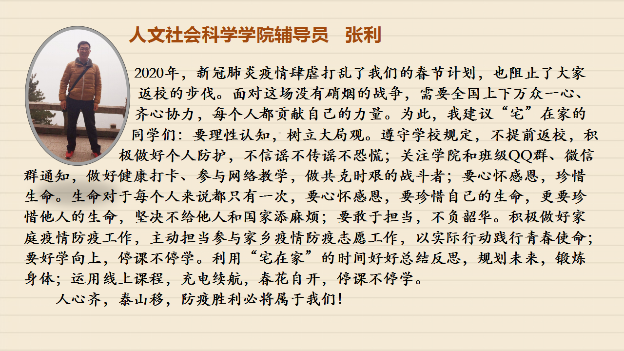 自新冠肺炎疫情发生以来,安农全体辅导员老师们始终默默奋斗在战“疫”一线,关注疫情数据、摸排学生情况、做好防疫宣传…………他们用实际行动守护着安农两万多名学子,用奉献和坚持践行着辅导员的岗位职责,诠释了辅导员的初心和使命。近日,教育部思政司党支部向全国高校辅导员致信,作为全国高校辅导员的“娘家人”,为大家点赞,向大家致敬,并勉励大家“以更加顽强的意志,以更加坚强的党性,以更加有力的行动,当好教育系统疫情防控的‘大考之人’,早日夺取抗击疫情斗争的全面胜利!”本期【战“疫”师者说】,听听辅导员们有哪些心里话想对同学说。