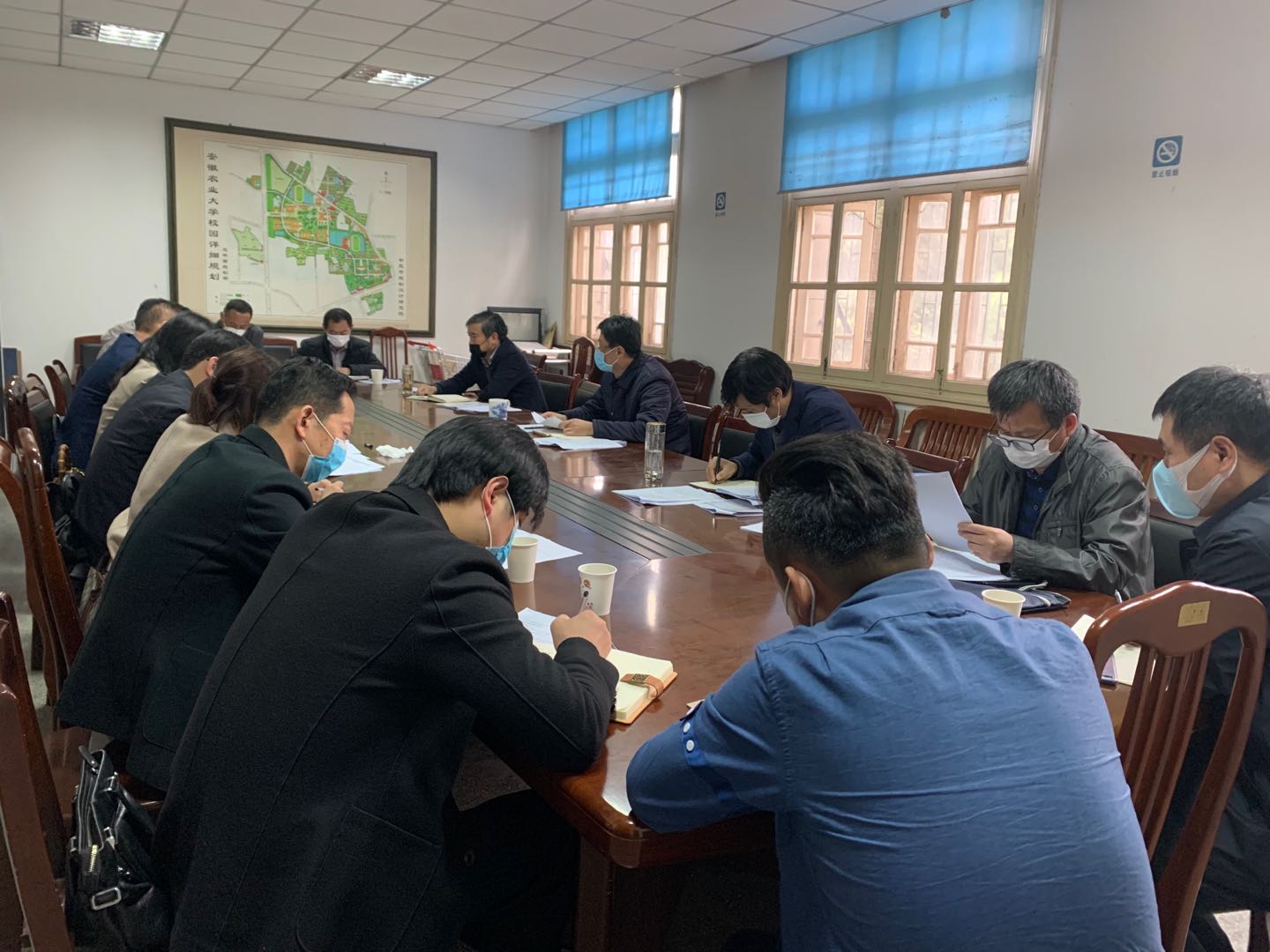 本网讯 4月14日下午,学校在第五会议室召开学生食堂防疫工作会议。校党委常委、副校长韩军主持会议,总务管理处(基建办)、后勤集团、学生公寓小区管理中心主要负责人,安徽众安第三方食品监管服务有限公司总经理以及学校在服餐饮企业法人和相关工作人员等参加会议。