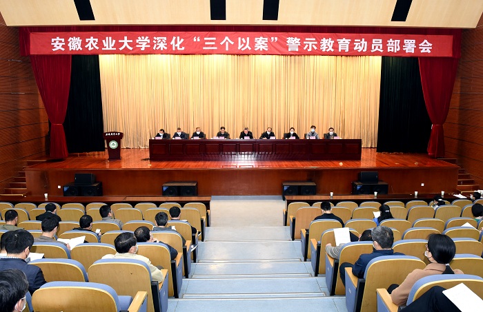 本网讯4月23日下午,学校深化“三个以案”警示教育动员部署会在图书馆第一报告厅召开。校党委书记江春作动员部署讲话,校领导夏涛、李红、蒋家平、韩军、朱立军、操海群出席会议。校党委副书记裴树东主持会议,校党委常委、纪委书记陈文兵宣读学校党委《关于深化“三个以案”警示教育的实施方案》。全体处级干部参加了动员部署会。