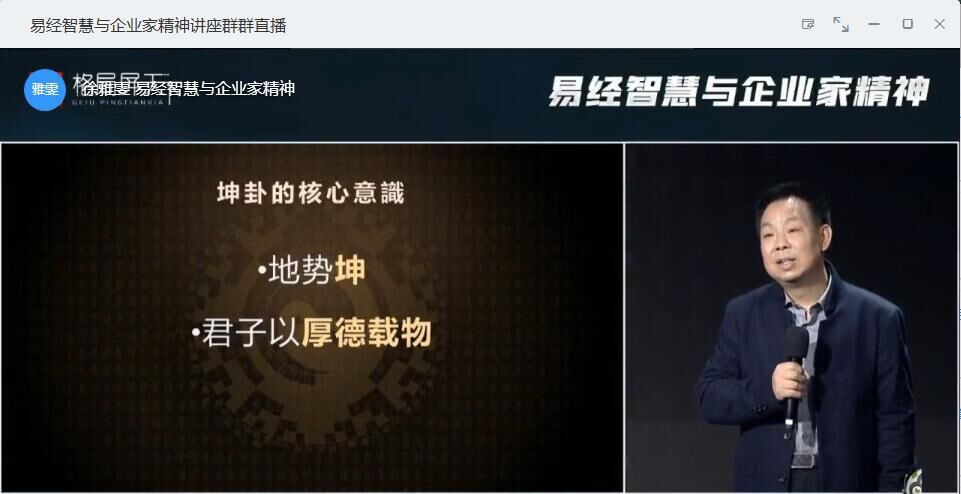陈兆杰以《易经》十二卦来解析企业家精神,从民族智慧中探寻创业精神源头。他从《易经》视域下详细地阐述了什么是企业家精神,提倡大家把握节奏、夯实自我、自强不息、厚德载物。他肯定了进取精神对创业者的重要意义,并引导大家不断磨砺自己,自强不息,努力培养自身的进取精神。他强调企业家需具备厚德载物精神,对人正直、大方、忠诚,能够考虑全局后果,在创业过程中不忘初心。