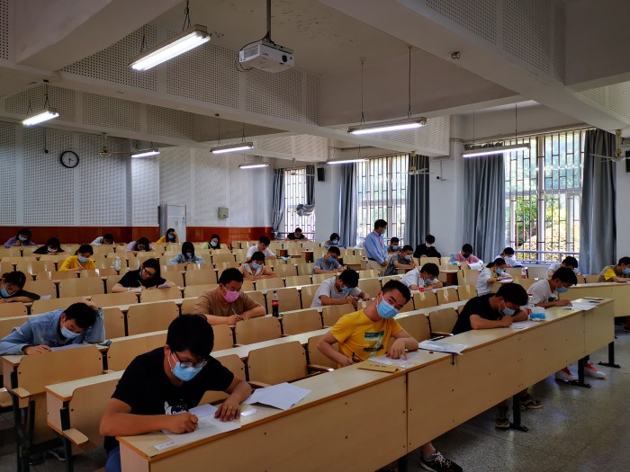 为做好疫情特殊时期的考试工作,教务处、学生处切实加强对补考工作秩序以及安全的管理,及时通知学生查询补考信息、做好监考巡考和防疫工作。本次补考总计课程148门,考试597人次。考场总体情况良好,考生认真答题,自觉遵守考试纪律,监考教师规范监考,考场秩序井然。