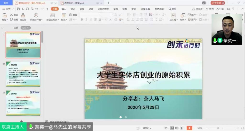 本网讯5月29日晚,我校茶与食品科技学院2005届校友、茶道“四修”理念发起人和践行者马飞先生做客我校2020年第12期“创禾进行时”,带来了一场以“大学生实体店创业的原始积累”为主题的线上直播创业沙龙分享会。本次活动由我校团委和安徽医科大学团委联合主办,两校团学工作相关负责人、大学生创客共计600余人参与了此次活动。