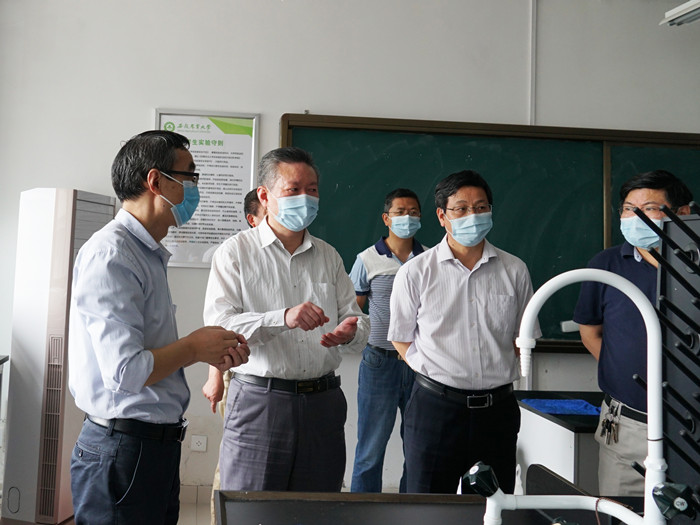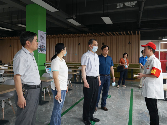 检查组一行先后来到各学院教室、实验室,学生宿舍、食堂、教学楼宇、图书馆、校园施工现场和各校门管控区域等重点场所,对学校的治安管理、消防安全、实验室安全、食品卫生安全、生产安全、疫情防控和学生返校准备工作等进行检查指导。