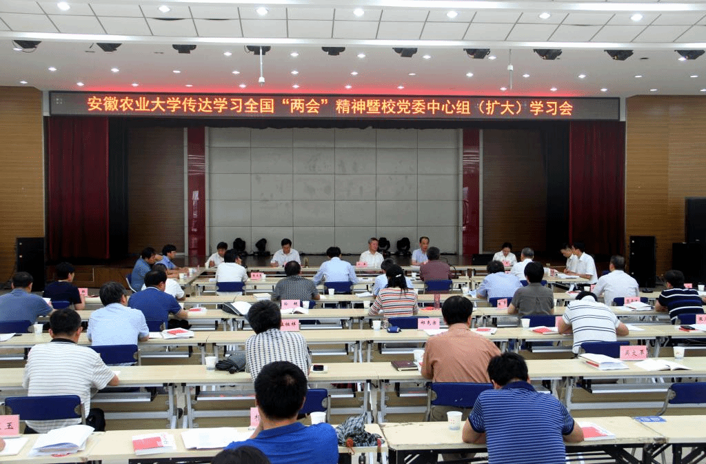 本网讯6月5日下午,学校在欣苑四楼学生活动中心召开传达学习全国“两会”精神暨党委中心组(扩大)学习会。校党委书记江春主持会议。校领导夏涛、裴树东、李红、马传喜、蒋家平、韩军、陈文兵、朱立军出席会议。