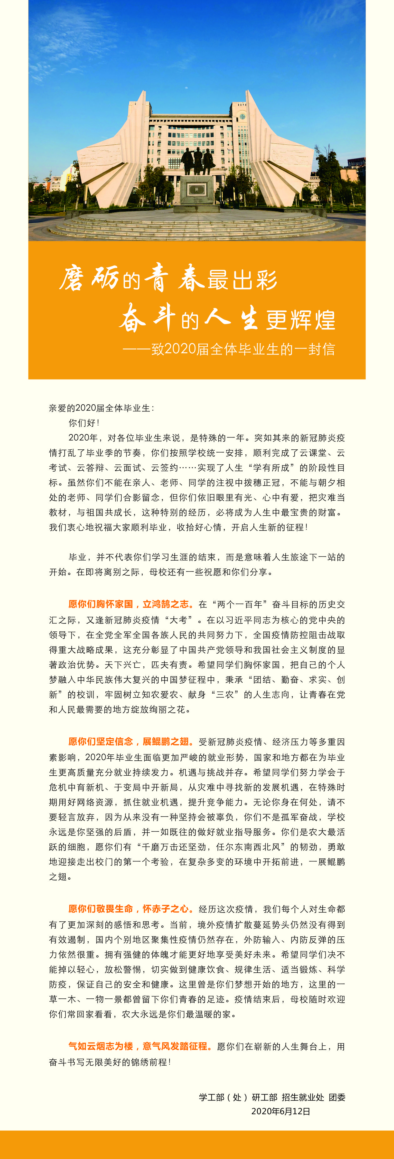 磨砺的青春最出彩 奋斗的人生更辉煌——致2020届全体毕业生的一封信