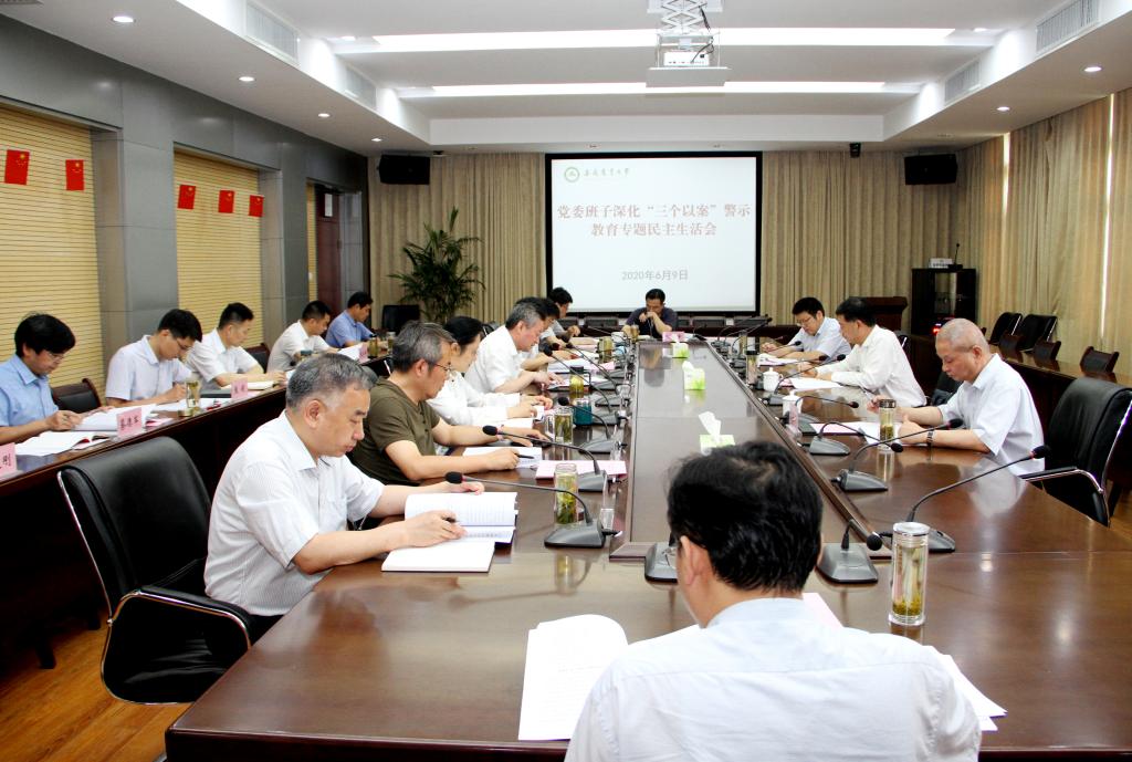 本网讯 6月9日,校党委按照省委统一部署和深化“三个以案”警示教育工作要求,在校第三会议室召开校党委班子深化“三个以案”警示教育专题民主生活会。省委教育工委副书记庆承松、省委教育工委组织干部处一级调研员朱晓明、省委第七巡视组副科级干部赵磊到会指导。全体校党委常委参加会议。校领导夏涛、马传喜、校办公室、纪委办等部门负责人列席会议。会议由校党委书记江春主持。