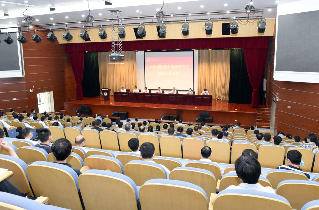 校党委书记江春在讲话中指出,这次机构调整和中层领导班子换届是校党委经过认真研究、充分听取各方意见作出的重大决策,是学校政治生活中的一件大事,也是学校全面加强党的领导、党的建设、深化改革和加快推进特色高水平大学建设的一件大事。要深化思想认识,切实增强做好这次机构调整和中层领导班子换届工作的政治责任感。这次机构调整,是进一步理顺内设机构职能职责、推动学校治理体系和治理能力现代化的重要举措;这次中层领导班子换届工作,是落实新时代党的组织路线、建设高素质专业化干部队伍的重要契机。