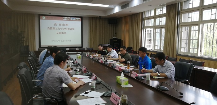 本网讯 7月28日,安徽理工大学学生处处长赵宁一行五人来校调研学生工作,学生处负责人及部分学院分管学生工作负责人参加会议。