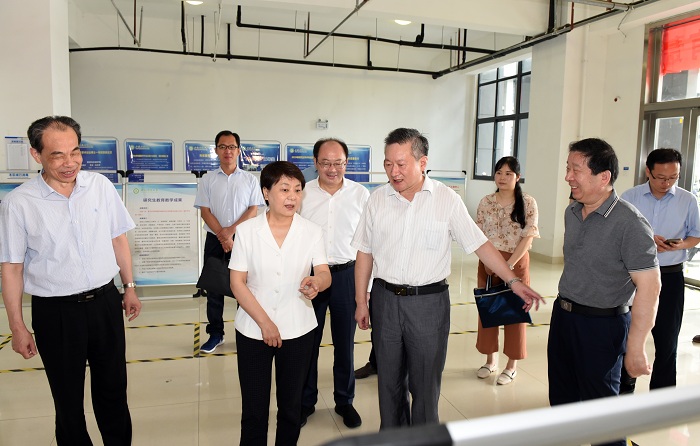 本网讯8月7日上午,安徽省副省长王翠凤一行来我校调研指导研究生教育工作。省委教育工委书记钱桂仑、省教育厅副厅长储常连,校领导江春、夏涛、马传喜陪同调研。