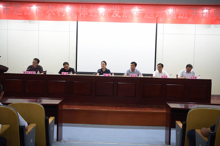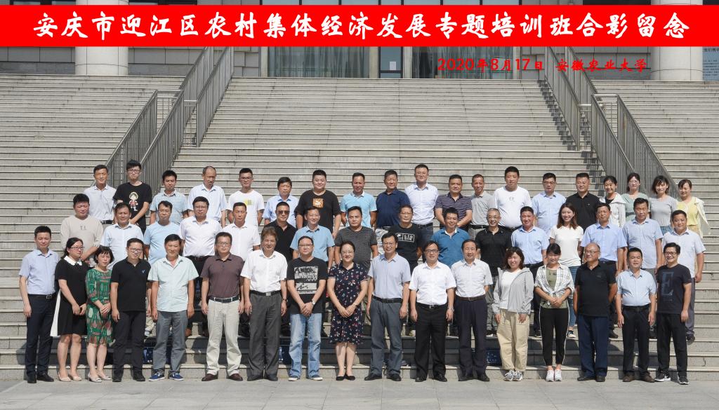 近日,受安庆市迎江区委区政府委托,迎江区农村集体经济发展专题培训班在我校举办。迎江区主要领导,各乡(街道)、村主要负责人,新型农业经营主体负责人,区直相关部门负责人等 50 多人参加此次培训。