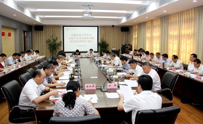 他强调,要以强烈的责任担当,推动习近平总书记视察安徽重要讲话和指示精神在学校落地生根。要持续做好校园常态化疫情防控工作,进一步压实工作责任,坚决杜绝麻痹思想、侥幸心理和松劲心态,严格落实学校开学工作方案的各项要求,始终筑牢校园防控防线。要认真做好“十三五”总结和“十四五”谋划工作,确保“十四五”规划编制的科学性和民主性,努力把规划编制过程变成集思广益、统一思想、凝聚共识的过程。要坚持思想解放要快上一拍,推动创新要高人一筹,面对大事敢于担当作为,面对难事敢于挺身而出,以改革创新、敢于担当、勇于斗争的精神大力推进学校内涵式发展。