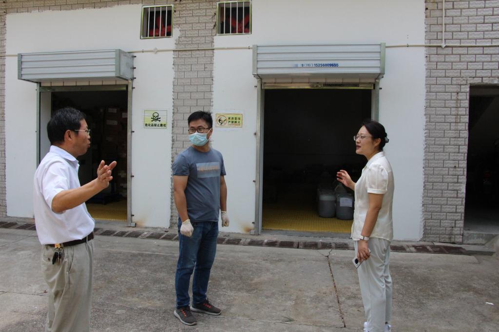 本网讯9月3日上午,校党委常委、副校长李红检查学校实验材料仓库和实验室化学废弃物中转站的安全工作,国有资产管理处处长桂祖祥陪同检查。