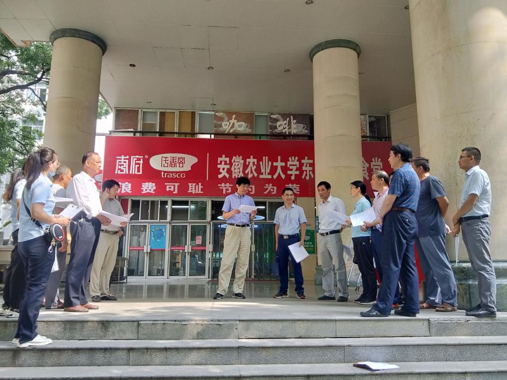 本网讯 以“消除食品安全隐患,筑牢新冠疫情防线”为主线,后勤保障处坚持学生安全第一,生命至上原则,认真筹划新学期食堂工作全面检查,及时排查各类安全隐患,积极推进常态化疫情防控下的安全生产工作。9月2日上午,校党委常委、副校长韩军带队,由校办、学生处、团委、工会、保卫处、后勤保障处、第三方监管和学生代表参加,分五个专业小组对食堂疫情防控、食品安全管理、面向采购、保供稳价、文明就餐和水电气安全等方面进行集中全面检查。