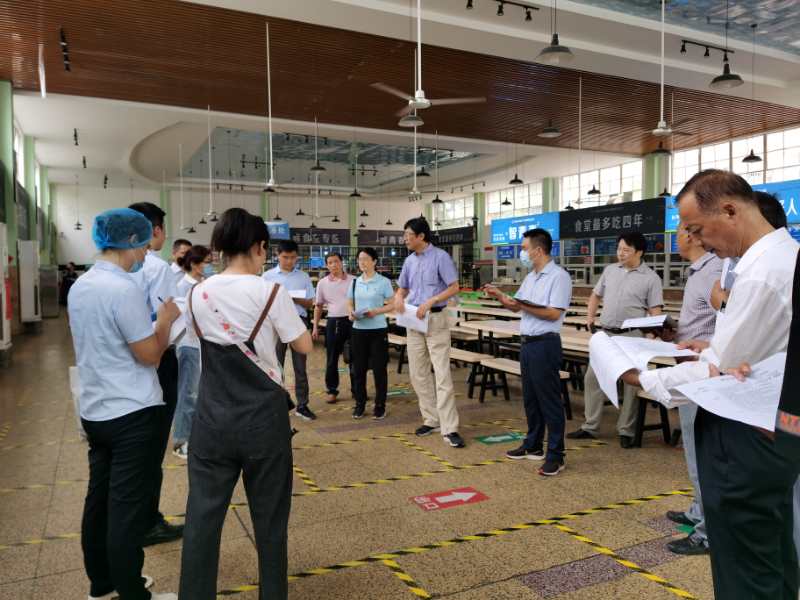 筑牢疫情防控防线。学生食堂疫情防控是校园疫情防控体系中的重要组成部分,本次主要集中检查食堂疫情防控方案的学习教育情况,包括学习培训和内容记录等;检查食堂员工开学前14天出行信息、体温检测和身体健康状况记录等,以及员工管理是否符合疫情防控要求;检查防疫物资准备与发放记录,包括消毒剂、口罩、手套、洗手液配置等防疫物资使用和发放情况;检查食堂每天消杀记录,入口体温检测,二维码设置,就餐时人流导向,空调和公共区域物体表面是否做好消毒、通风;检查食堂是否购买进口冷冻品,是否可溯源,进口冷冻品包装是否拆除等;就餐大厅是否摆放、张贴疫提示等。