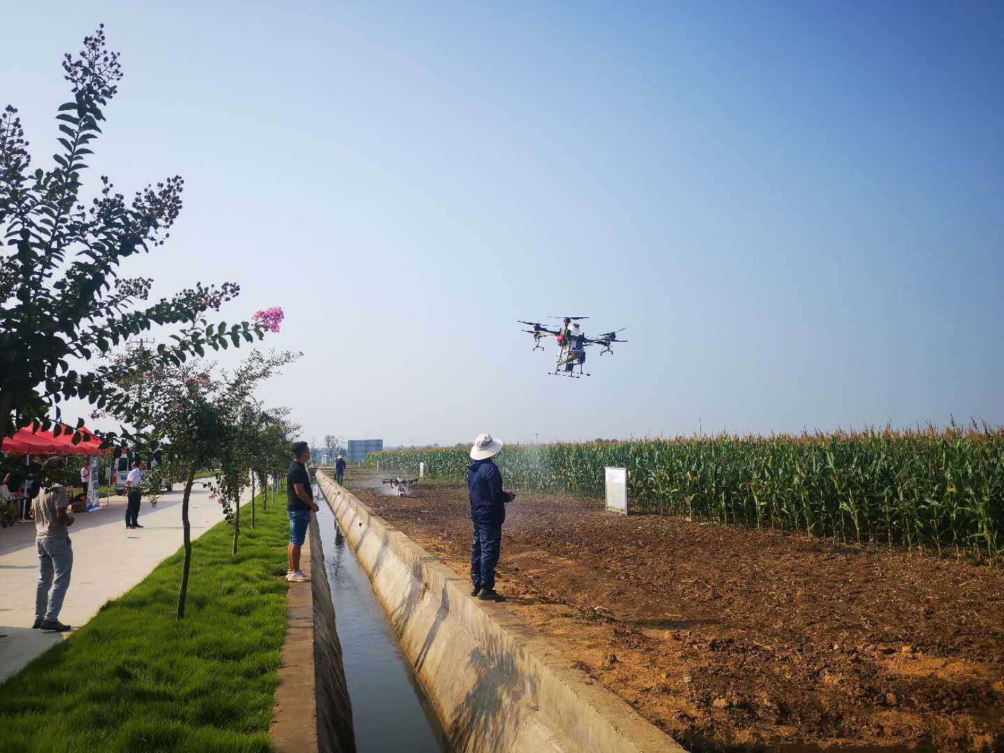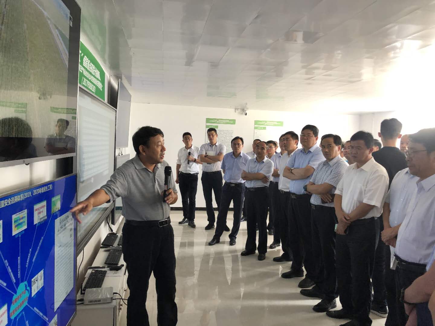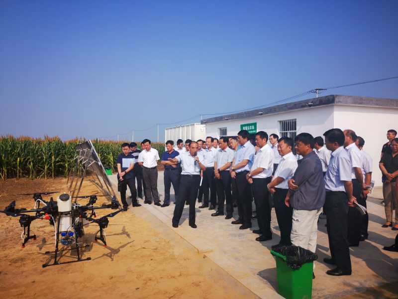 观摩调研中,我校程备久教授对“大田固定管网式智能水肥一体化技系统”和“无人机智能化热雾飞防技术”做了详细的介绍和演示。“大田固定管网式智能水肥一体化技系统”具有节约成本、提高效率、操作方便和智能控制等特点,可实现不占用有效耕地,不妨碍农机作业,随时随地随情智能化精准灌溉和肥水一体化应用,有效解决目前大田粮食生产上采用的传统灌溉和施肥技术存在的成本高、肥水利用率与管理操作效率低、自动化控制与智能化操作水平不高等难点问题。“无人机智能化热雾飞防技术”具有高工效、高防效、低成本和绿色环保等特点。两项技术的应用对农业生产智能化、精细化的提高以及农业生产提质增效具有极大意义,得到了与会各负责同志的高度认可和一致好评。