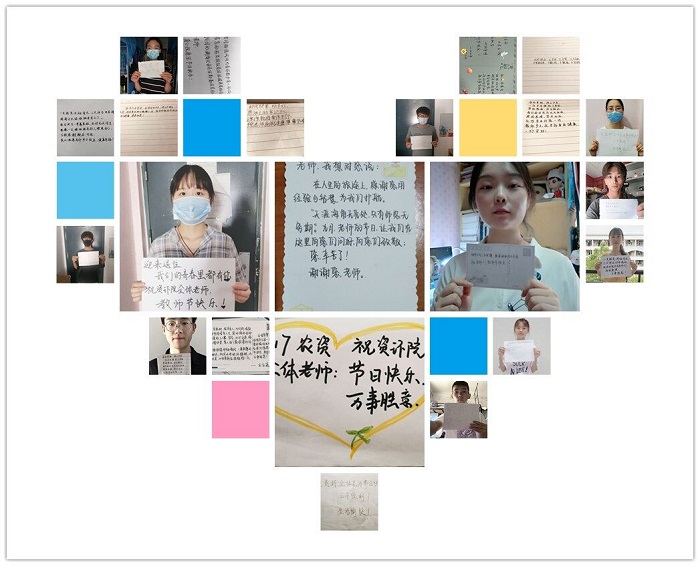 一根粉笔,书写多少春夏秋冬。三尺讲台,经历多少人来人往。经济管理学院开展了“树师德·铸师魂,难忘师恩·你我接力”活动,同学们线上线下踊跃参与,通过手工海波、线上感恩接龙等方式表达对老师们的美好祝愿。