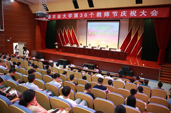 会上,教师代表动物科技学院张子军、马克思主义学院孙蕾分别作了发言。大会还举行了向优秀教职工代表致敬、退休教师荣休仪式等活动,并播放了教师节MV《初心》。