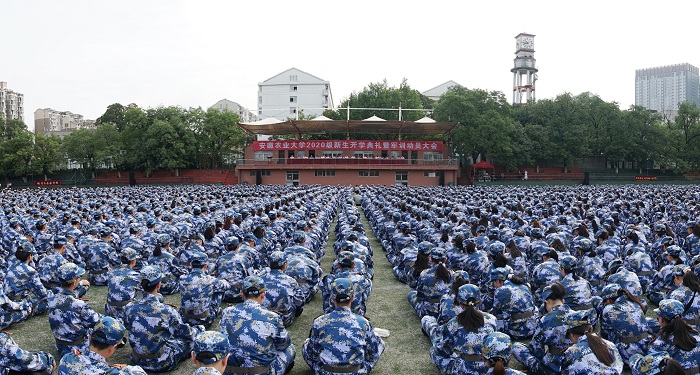 校长夏涛代表学校对新生的到来表示热烈的欢迎,并以“弘扬抗疫精神 争做时代新人”为主题,发表了热情洋溢的讲话。他说,安徽农大是一所有底蕴、有追求、有担当、有希望的大学,培养了以李家洋院士、方精云院士、张守攻院士等为代表的一大批教育楷模、学术名家、政界翘楚、商界精英和基层骨干,为经济社会发展做出了重要贡献。他指出,大学是最重要、最值得记忆的人生经历,也是培养个人品格和能力的关键阶段。同学们要弘扬抗疫精神,筑牢家国情怀,把个人理想自觉融入国家发展伟业,扎根人民,奉献国家,努力成长为德智体美劳全面发展的社会主义建设者和接班人。要掌握扎实学识,培养创新思维,瞄准科技前沿和关键领域,充分利用学校的科研平台,加强学术训练,拓宽学术视野,培养创新思维,勇于面对未知、接受挑战,努力成为国家急需的高层次人才。要勤于修身养性,锤炼高尚品格,成为有大爱大德大情怀的人,追求有高度、有境界、有品味的人生。他强调,军训是学习军队优良传统、培养艰苦奋斗精神的大课堂,也是磨砺意志、提高修养、增强体质的好机会。希望同学们严格要求,服从指挥,遵守纪律,刻苦训练,为自己的人生增添一份宝贵财富。