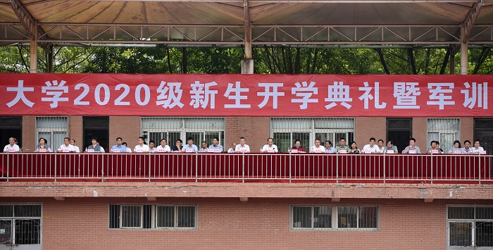 本网讯9月16日上午,我校在田径运动场举行2020级新生开学典礼暨军训动员大会。校领导江春、夏涛、裴树东、李红、韩军、陈文兵、操海群,承训单位领导许明进同志出席会议,校直有关单位负责人及各学院主要负责人,新生辅导员以及2020级全体新生参加大会。大会由校党委副书记裴树东主持。