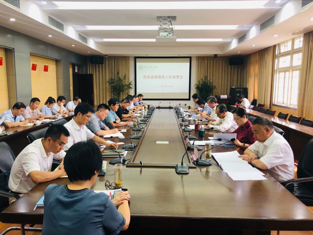 本网讯9月16日下午,学校召开十届省委第九轮巡视整改工作部署会。校党委书记江春主持会议并讲话,校领导夏涛、裴树东、李红、韩军、陈文兵出席会议。
