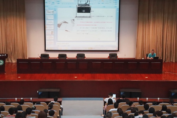 报告会上贾兴权从古籍的定义、分类、版本等概念入手,带领到场师生深入了解古籍相关知识。他认为安徽文人荟萃、皖人著述如林;安徽古籍存藏情况呈现出总量大、存量可观、文献价值高,但收藏相对分散,尚未充分整理利用等特征。在安徽省古籍整理出版界同仁的共同努力下,近年来安徽古籍整理出版硕果累累,涌现出了《安徽古籍丛书》《安徽古籍丛书萃编》(共64种92册)《方以智全书》(全10册)《安徽历代方志丛书》等一大批优秀古籍丛书。