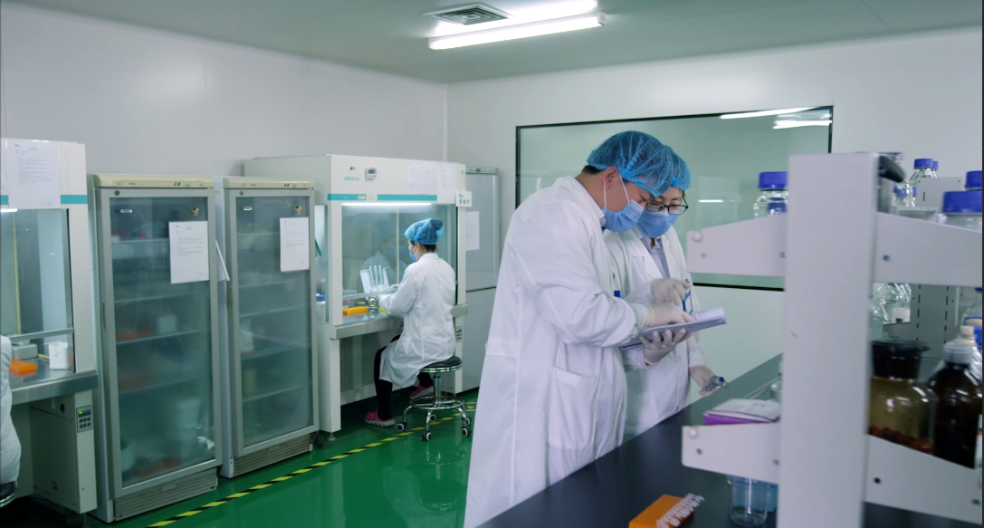 团队成员在青岛易邦实验室完成疫苗的制备工作