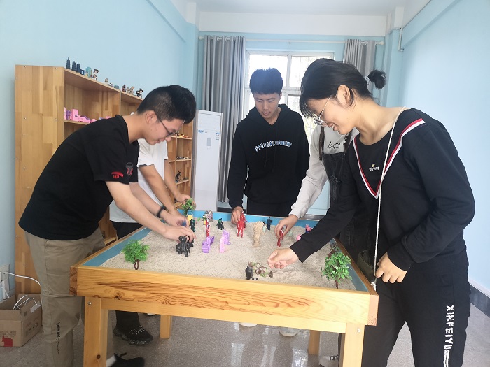 参观期间,中心选派大学生心理委员联合会志愿者担任讲解员,向新生介绍中心的工作内容、工作方式、特色活动及师资队伍情况。通过参观体验,帮助新生对团体辅导室、音乐放松室、沙盘室等功能室有了更直观的感受。在团体辅导室,新生了解了团体辅导的意义和组织形式;在个体心理咨询室,学生知晓了心理咨询预约的基本流程;在沙盘室,讲解员介绍了不同类型的沙盘模具,学生体验了有趣的心理游戏。